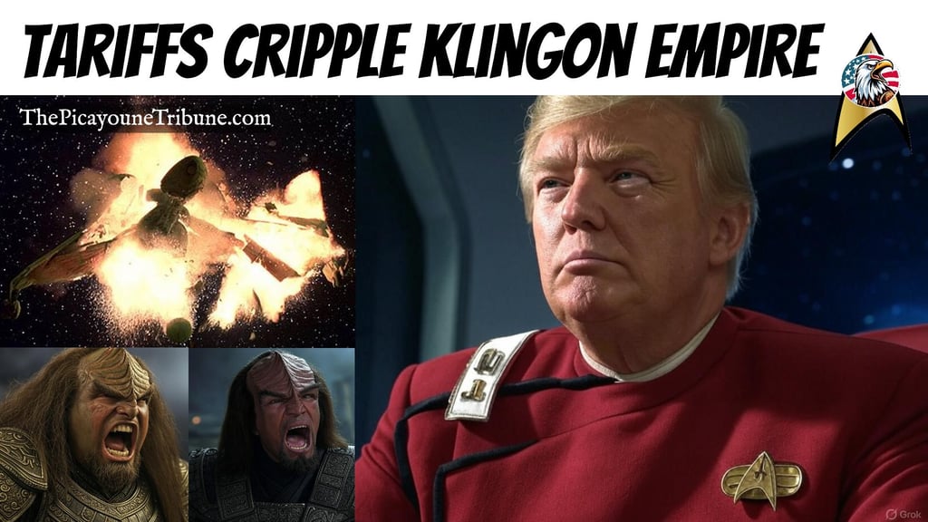 Not since Praxis exploded have such shockwaves echoed across the Alpha Quadrant. The Klingon Empire has caved under the weight of Trump’s tariffs, agreeing to allow Federation-made products into their home world. The decision marks a historic victory for Earth’s trade policies, which have long been at odds with the Klingons’ notoriously aggressive tariff system. “They’ve been taxing our dilithium crystals at 300% for decades,” Trump declared in a press conference. “It’s unfair. Very unfair. But now, we’ve won. Bigly.”