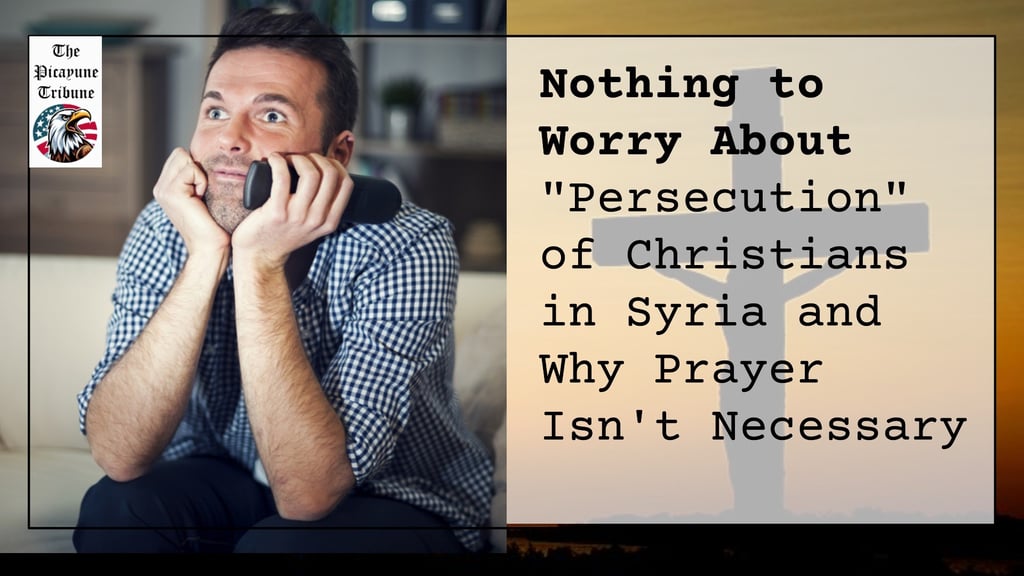 Let's get one thing straight: prayer is completely unnecessary when it comes to the persecution of Christians in Syria or anywhere in the world. There are far more important things to worry about, and the situation over there is really not that significant.