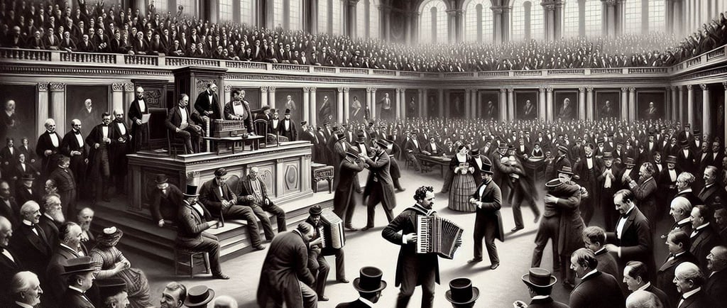 President Buchanan jams on the accordion during the last bipartisan square dance during a joint session of congress in 1815