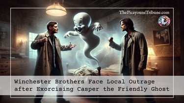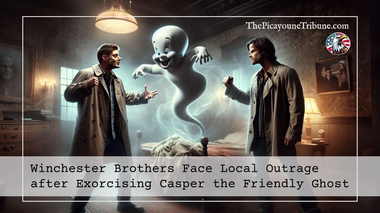Small Town, USA — The Winchester brothers, Sam and Dean found themselves at the center of local outrage after inadvertently exorcising the town's beloved ghost, Casper the Friendly Ghost. The incident has left the town in mourning, not only for the loss of a local mascot but also for the now-ordinary haunted house that once brought so much joy and spookiness to the community.